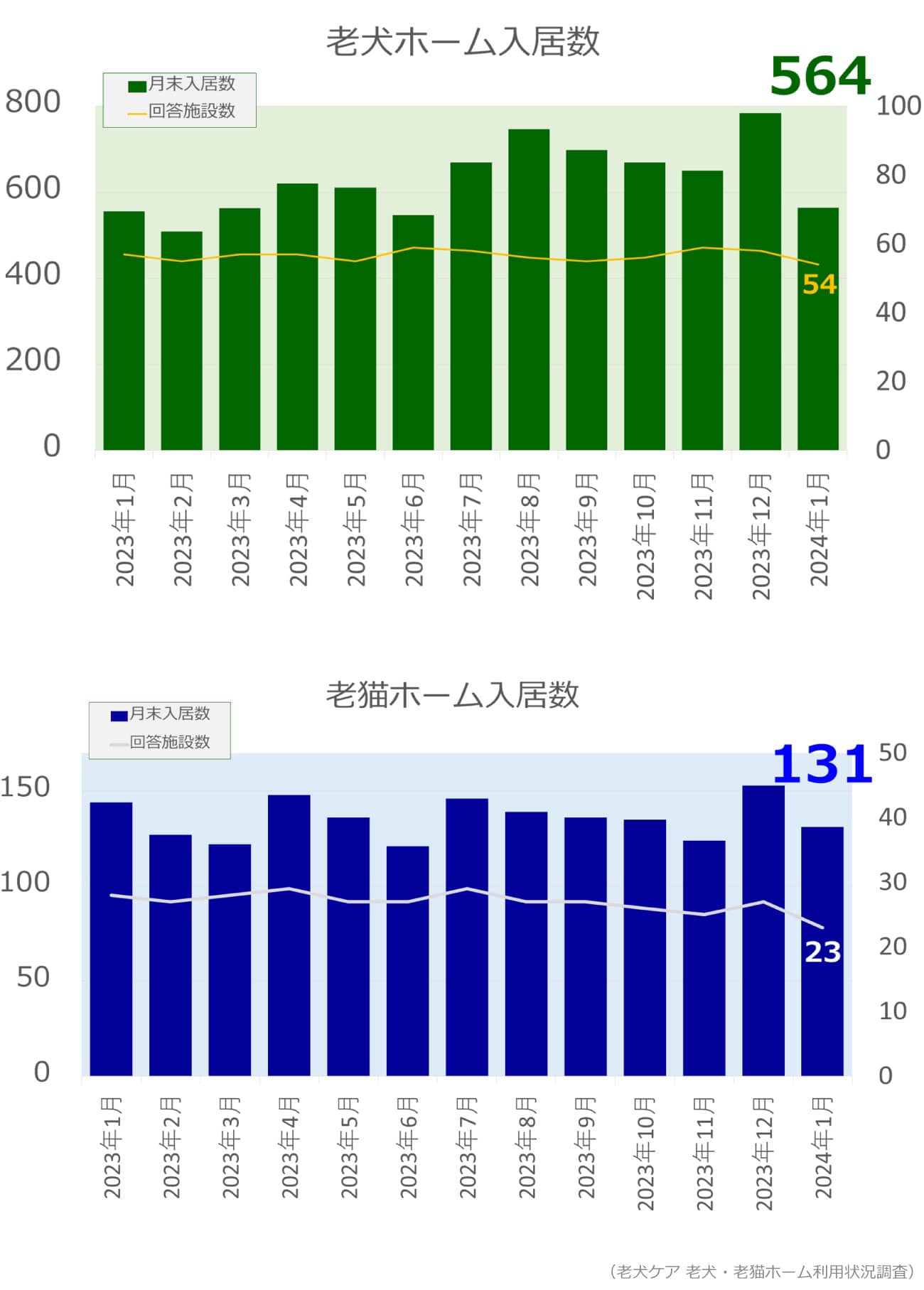 老犬・老猫ホーム入居数調査(2024年1月)発表