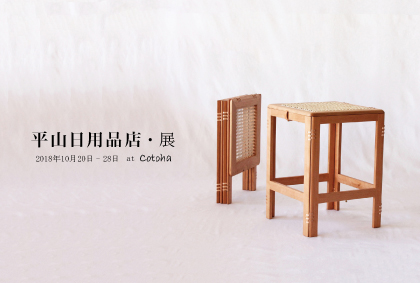 平山日用品店は、職人(夫)とデザイナー(妻)の2人が共同で無垢の木の家具を製造・販売しているお店です。経年変化が楽しめる無垢材と「機能から生まれる形」を大切にした飽きのこないデザインによって、長く使い続けられる家具を作り続ける事を目指しています。通常は宇治にある店舗・工房でオリジナル家具の展示と北欧や日本のアンティーク雑貨の販売を行っておりますが、この度、広く皆様に新作椅子をはじめとした無垢材の家具を体感して頂くために、京都市内の観葉植物店 Cotohaのギャラリーにて3回目の個展を開催致します。是非たくさんの緑の中で「平山日用品店」をお楽しみ下さい。