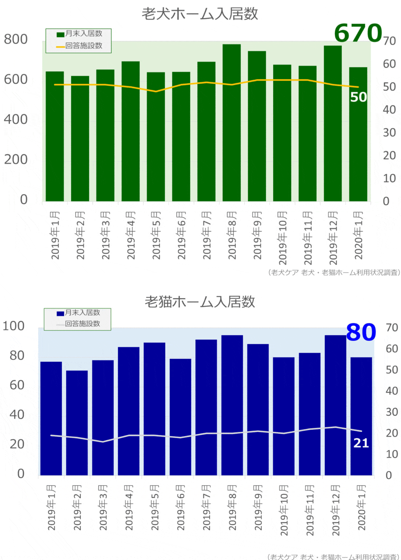 老犬・老猫ホーム入居数調査(2020年1月)