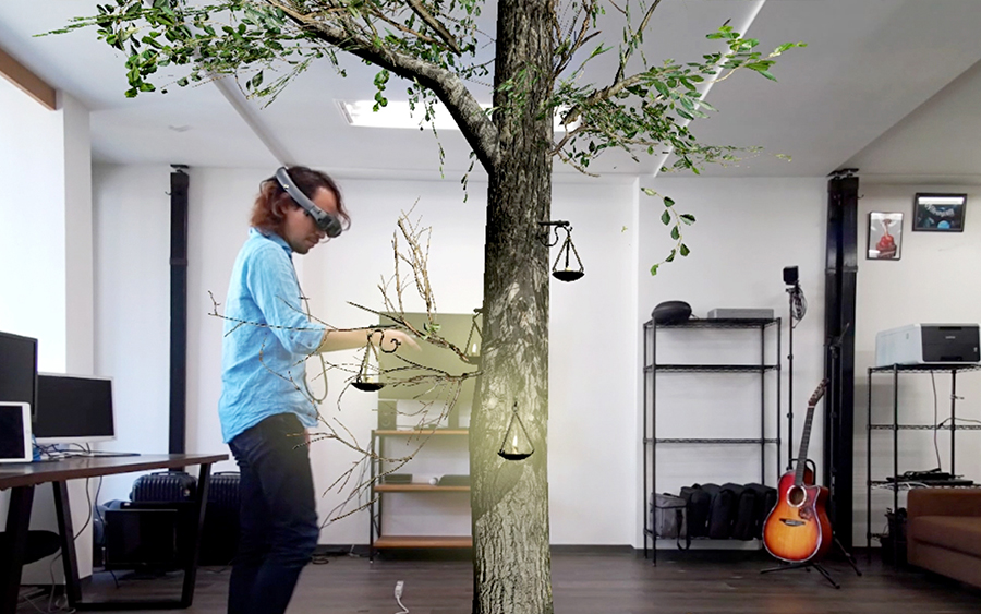 突如成長するの木に吊るされたキャンドルを探して、ホログラムの炎を点火するMagic Leapの操作チュートリアルを兼ねた簡単な謎解きミッションです。