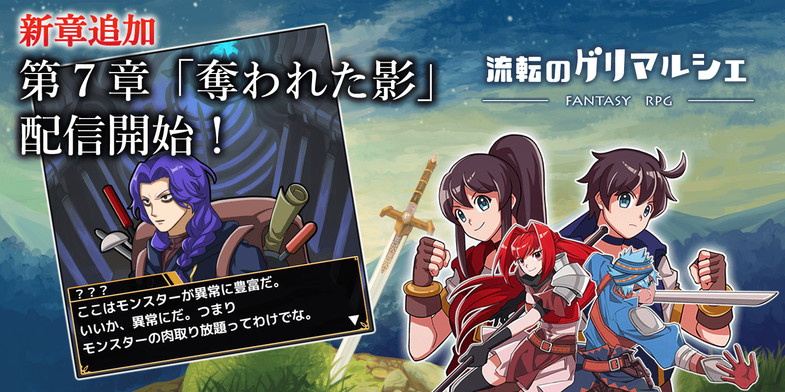 『流転のグリマルシェ』メインストーリー新章「第7章 奪われた影 ~魔の地下迷宮~」を追加!!