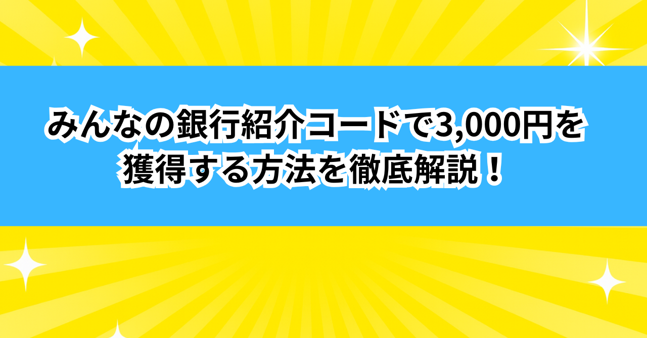 みんなの銀行紹介コードで3,000円を獲得する方法を徹底解説!