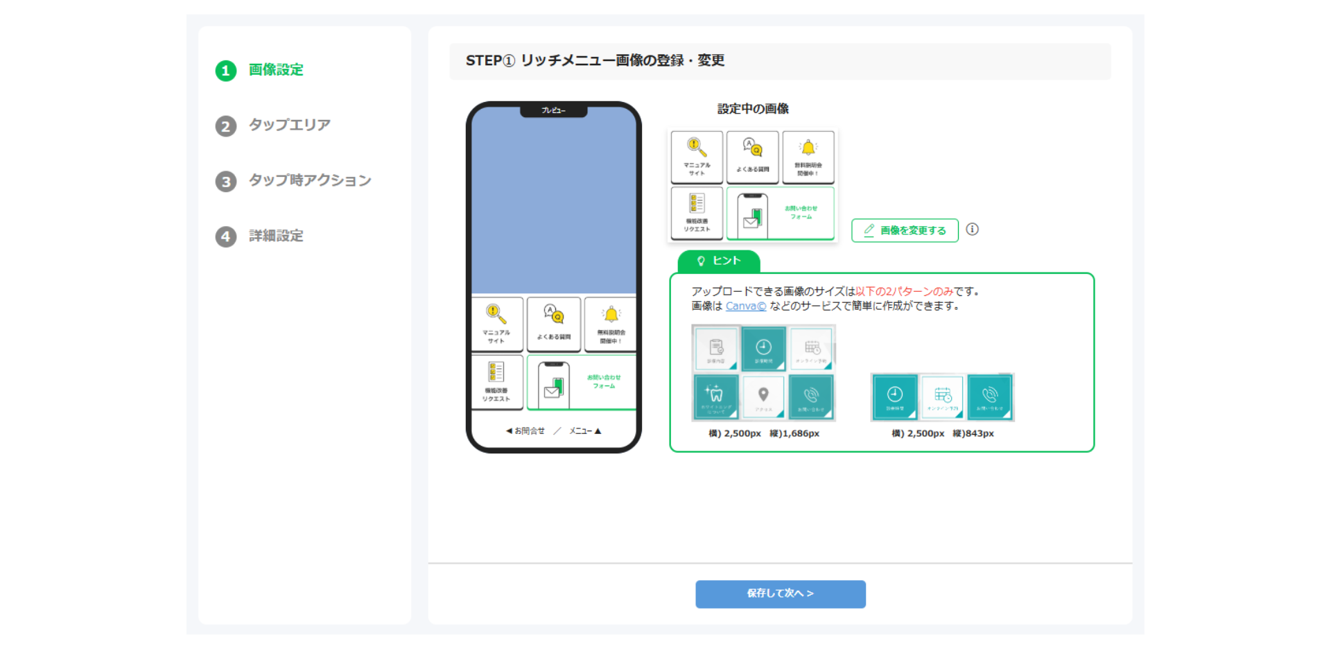 ステップごとの操作でリッチメニューの設定が簡単に