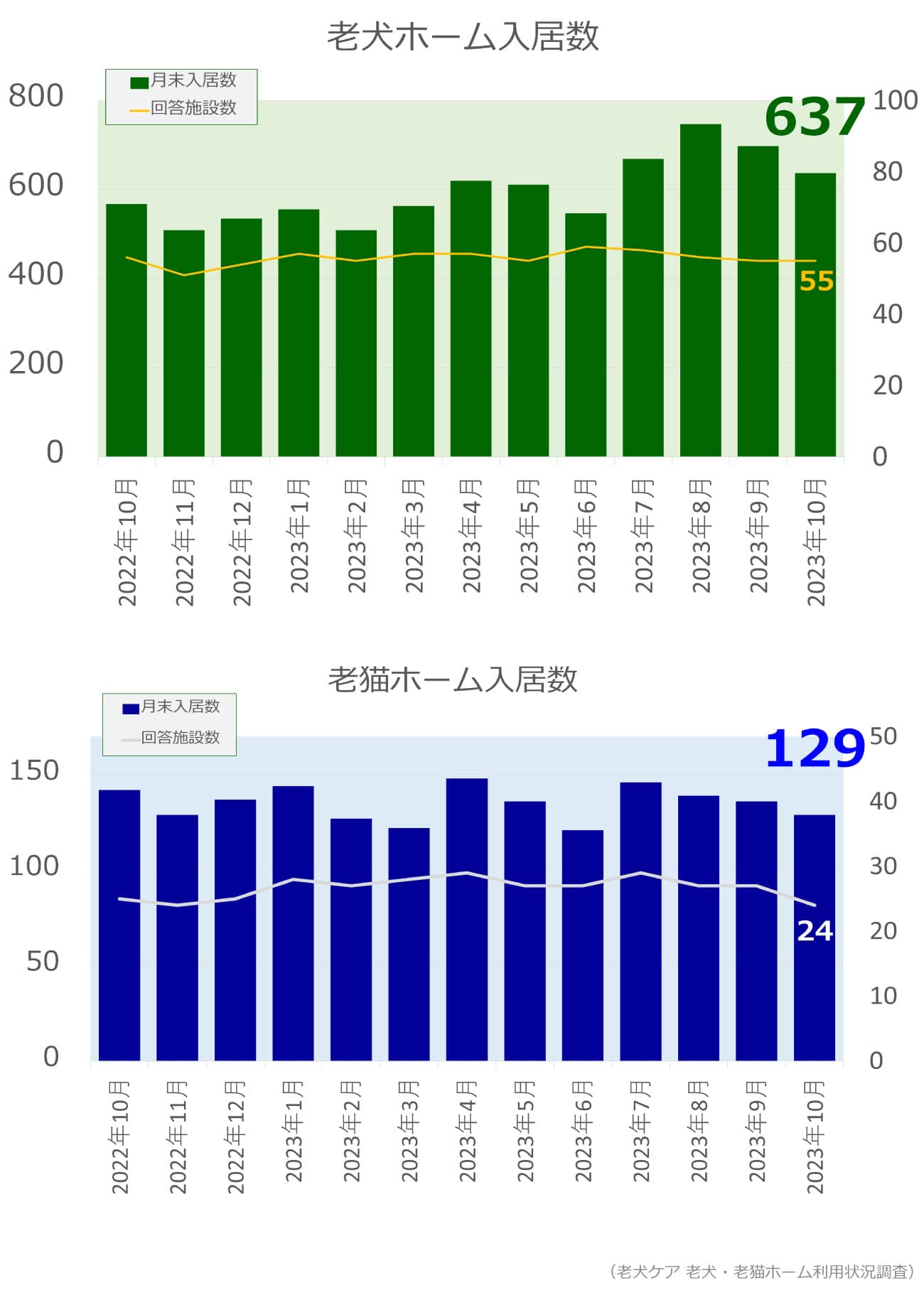 老犬・老猫ホーム入居数調査(2023年10月)