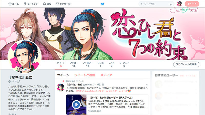 7月7日(土)より「恋ひし君と7つの約束」公式Twitterの運用を開始しました。