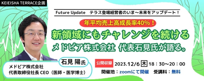 【KEIEISHA TERRACE企画】年平均売上高成長率40%!新領域にもチャレンジを続けるメドピア株式会社 代表石見氏が語る。