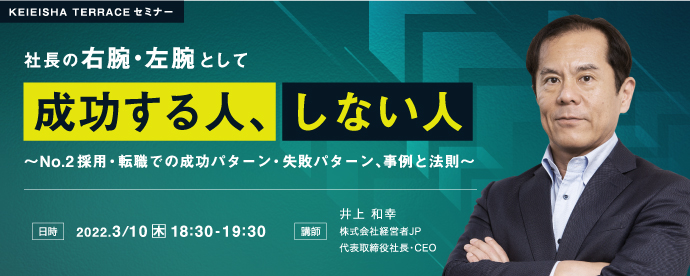 【KEIEISHA TERRACEセミナー】社長の右腕・左腕として成功する人、しない人 ~No.2採用・転職での成功パターン・失敗パターン、事例と法則~