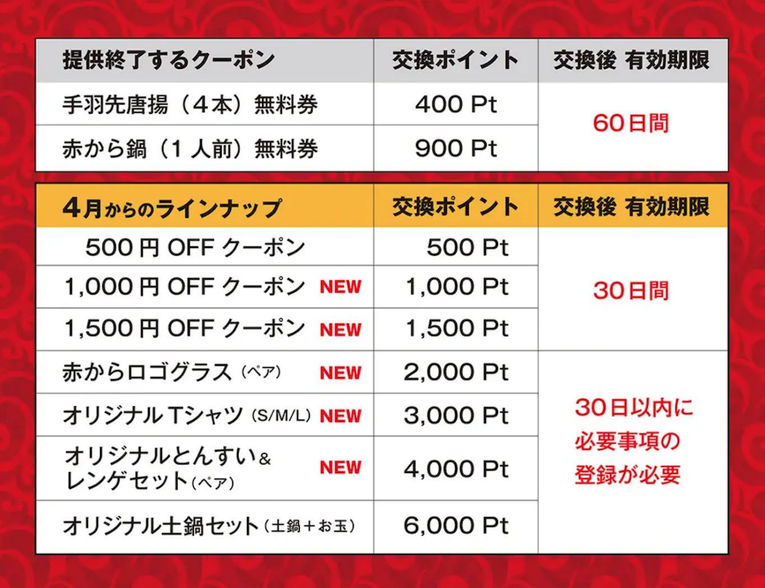 【赤から】公式アプリのポイント交換特典がリニューアル!