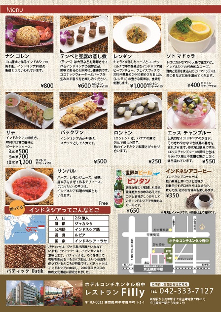 日本インドネシア国交樹立60周年記念 インドネシア料理フェア 8月17日(金)~8月31日(金)開催 ~ホテルコンチネンタル府中 レストラン「Filly(フィリー)」~