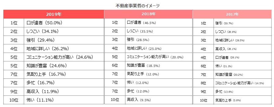 【調査】不動産事業者のイメージ 2019 2年連続「口が達者」のイメージ1位!