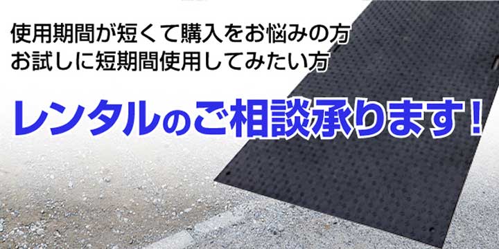 商品は魅力あるものですが、性能や仕様がインターネットからだと分かりにくい現実があります。そこでレンタルにて実際に利用して頂き、樹脂敷板を知って頂くことを目的としています。