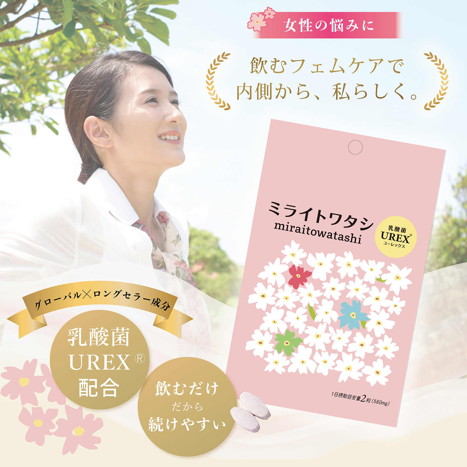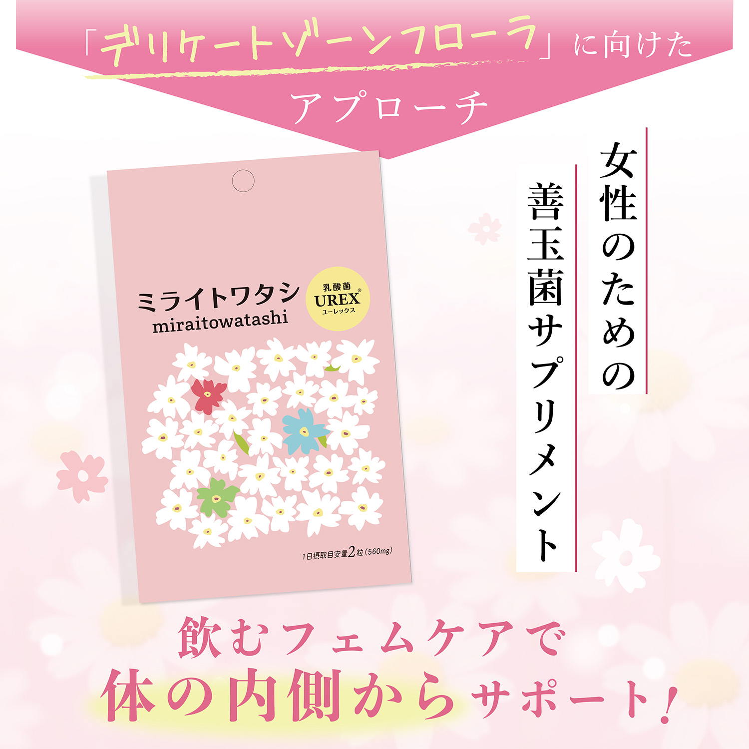 膣に定着する乳酸菌「ユーレックス」を配合した新サプリメント 女性のデリケートな悩みを“飲んでケアする”『ミライトワタシ』を発売開始