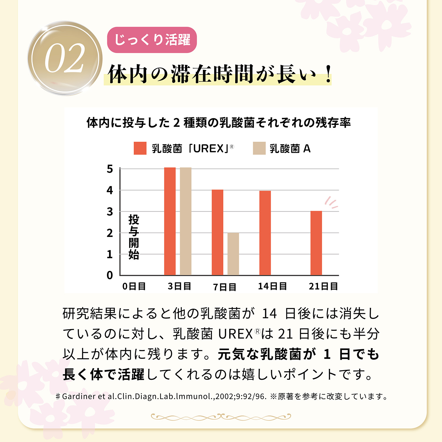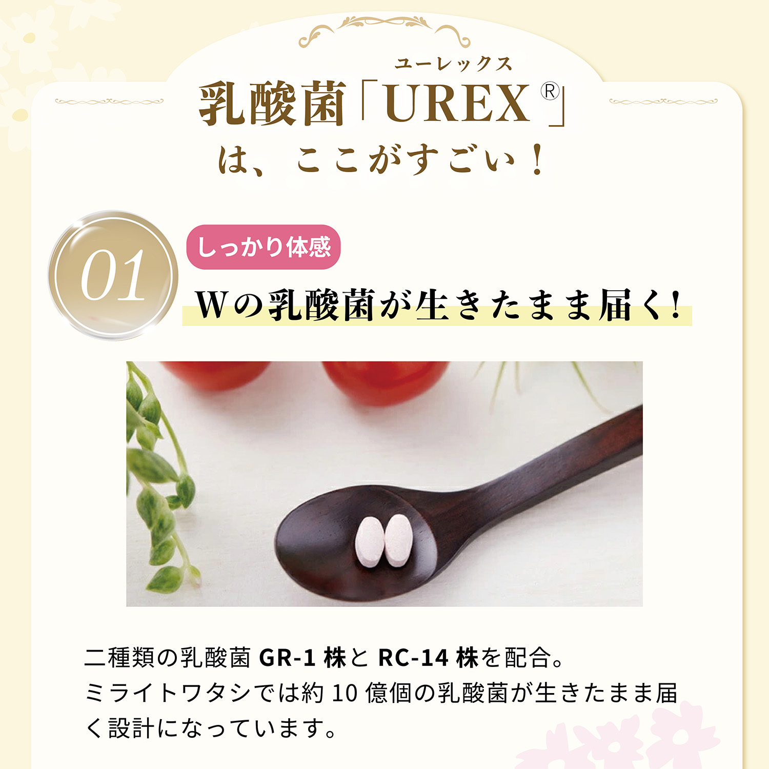 1. 膣内に長く滞在する乳酸菌ユーレックスを配合