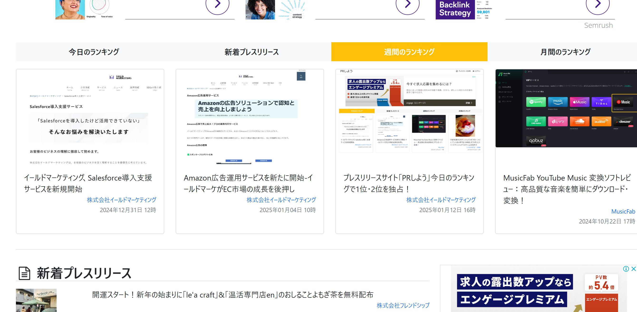 イールドマーケティング、プレスリリースサイト「PRしよう」週間ランキングで驚異のトップ3独占!