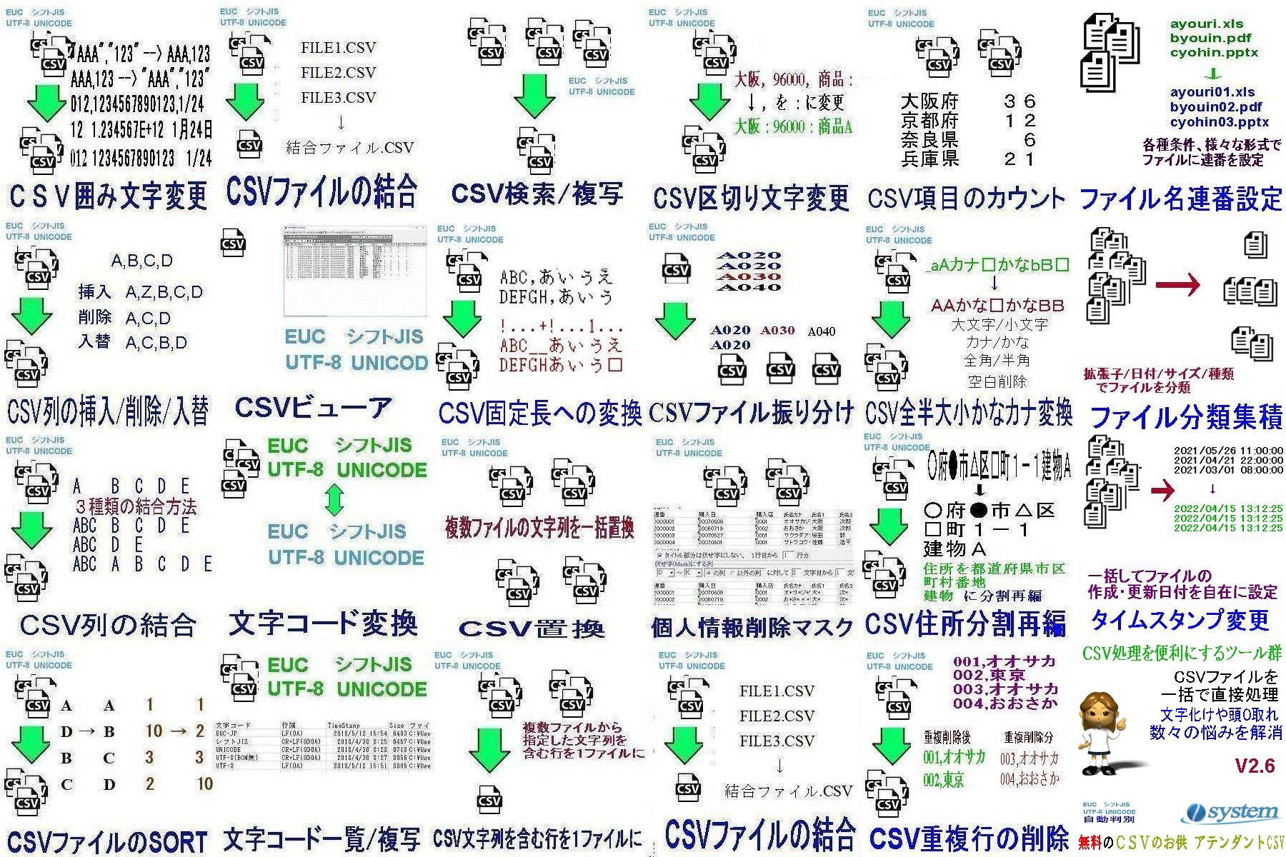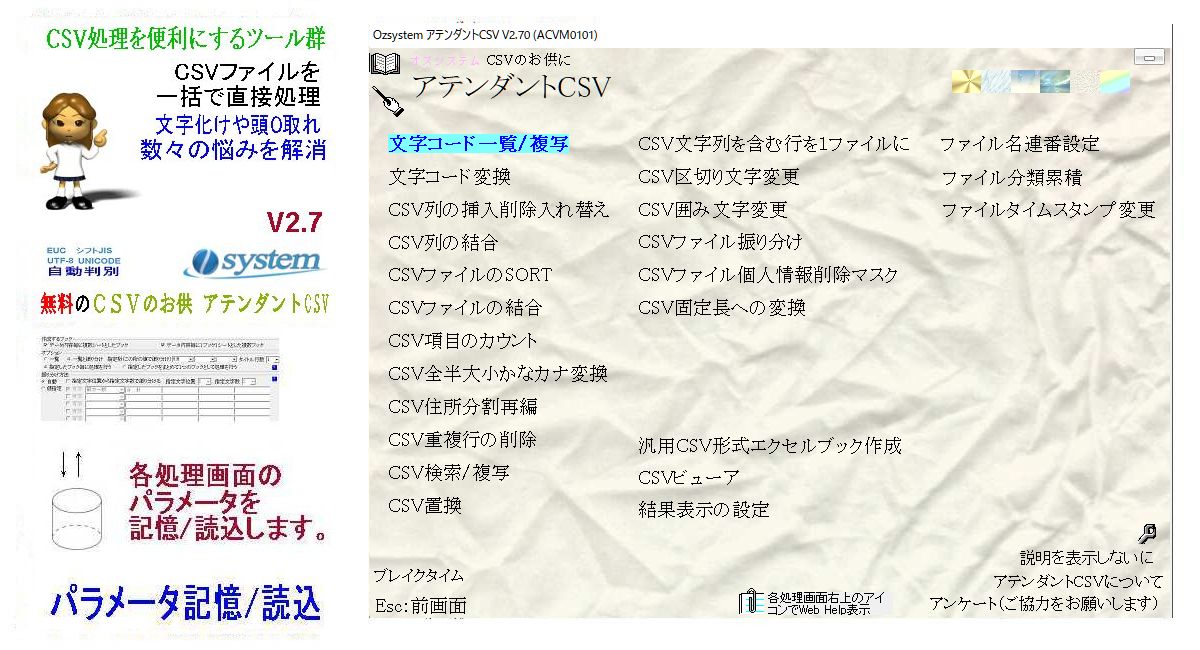 タイトル:CSV処理をより便利にする無料ツール集「CSVのお供 アテンダントCSV」V2.70にバージョンアップ