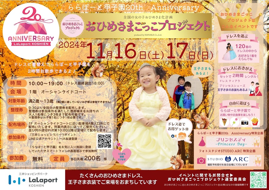 11/16(土)・17(日)ららぽーと甲子園で おひめさまごっこプロジェクトⓇ開催
