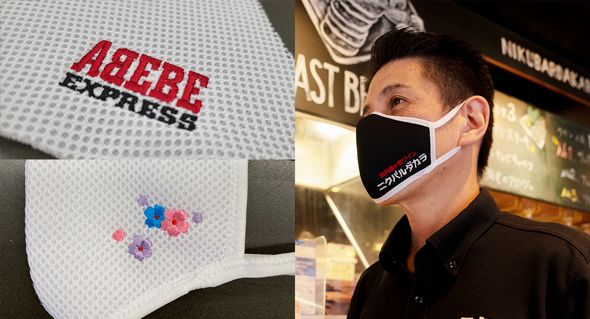 へたりにくく洗濯しても型崩れしない3D立体布マスクに、たしかな品質のオリジナルの刺しゅうを施し、企業・店舗で長く使っていただける製品を目指しました。