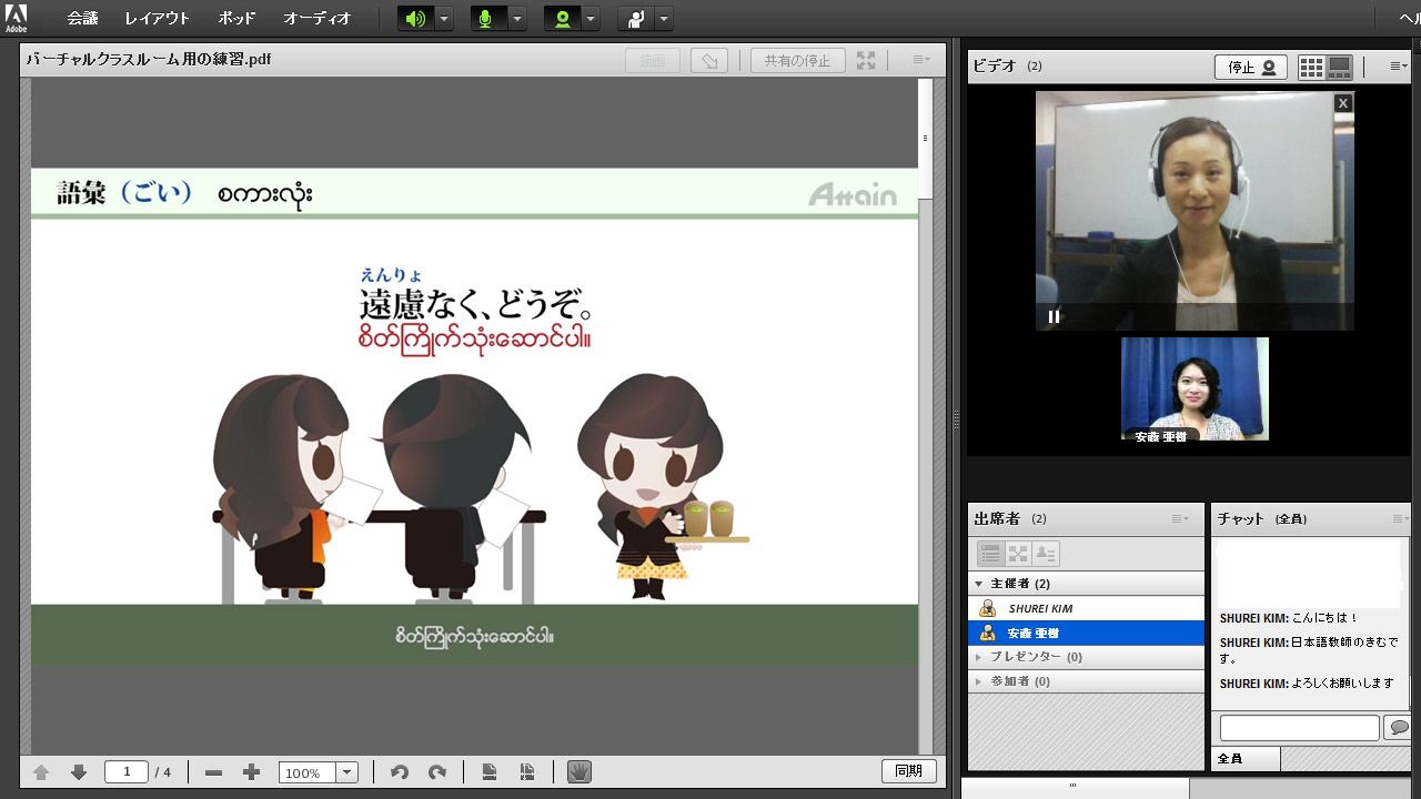 JLPT合格を目指して、eラーニング教材「Attain Online Japanese」を利用した上に、オンラインで日本語講師と直接に交流し、日本語レッスンを受けるサービスです。