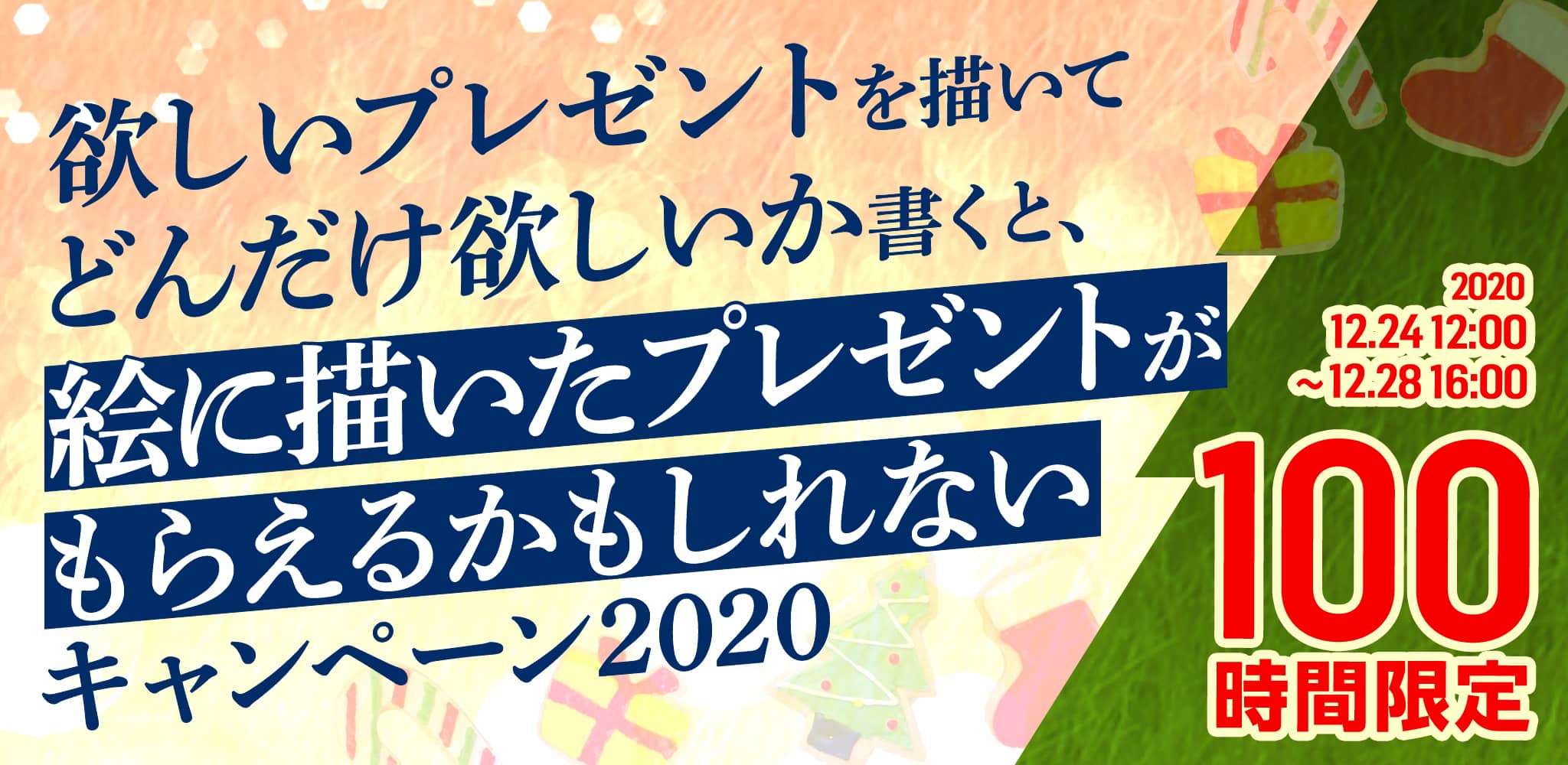 「【100時間限定】欲しいプレゼントを描いてどんだけ欲しいか書くと、絵に描いたプレゼントがもらえるかもしれないキャンペーン2020」は、クリスマスはクリぼっちのあなたにも、クリスマスも仕事が捗るあなたにも、クリスマスはリモートデートなあなたにも必ずやってくるクリスマスに、ちょっとしたスパイスを与えるキャンペーンです。