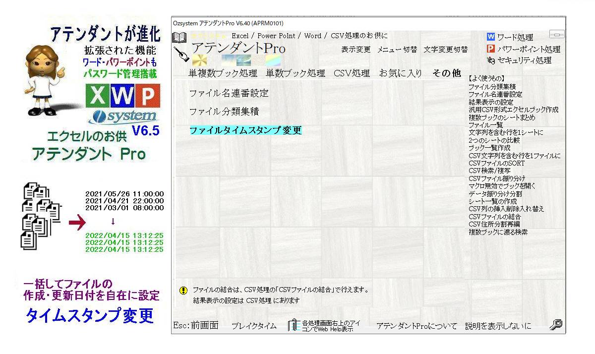 アテンダントProをバージョンアップ。ファイルタイムスタンプ変更を追加