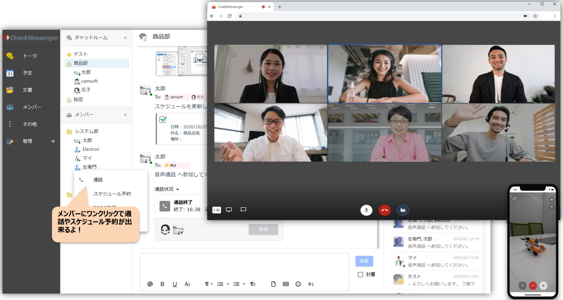 Chat&Messenger はビジネスチャット、Web会議、スケジュール、文書管理などを統合した