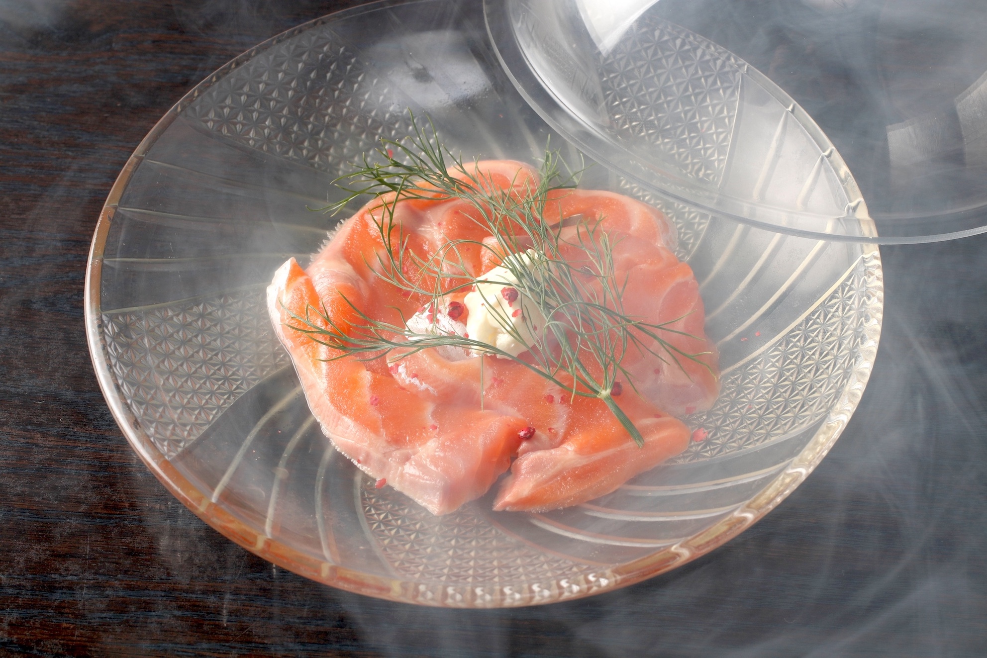 お客様の⽬の前でふたをはずすと、⽩い煙とともに芳醇な⾹りが豊かに広がります