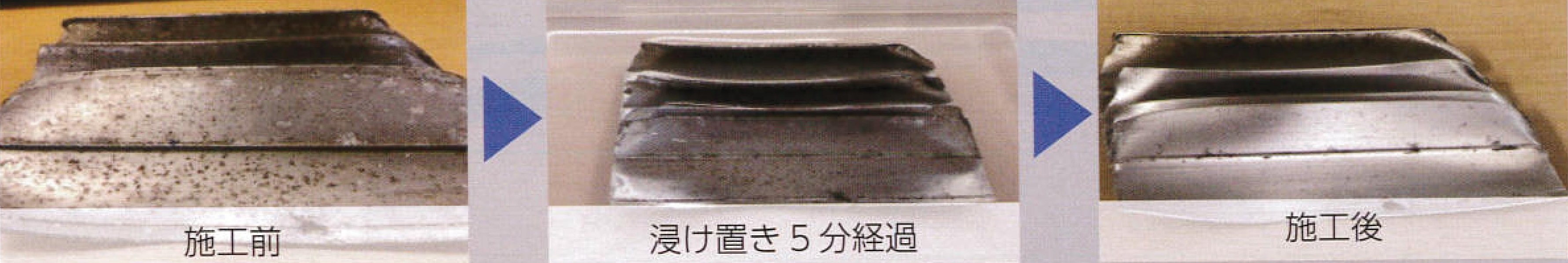 他社製品と比べ本剤を温める必要もなく、作業時間も短い為、塗装作業での前工程であるサビ取り作業にも適しています。