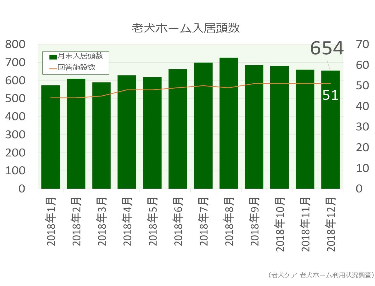 全国の老犬ホームの有料入居頭数は654頭となりました。