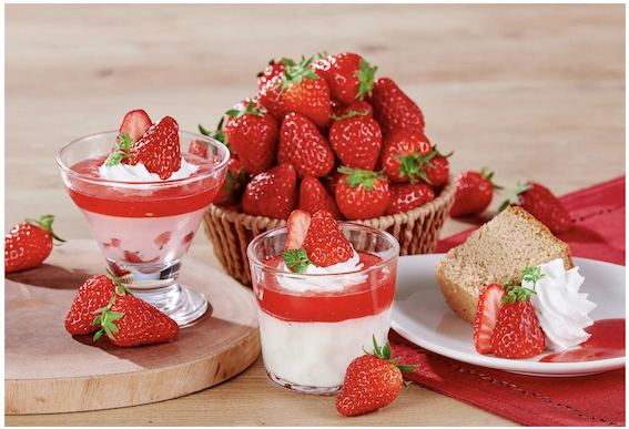 特徴のあまおうジュレを使用した特製いちごスイーツなどを