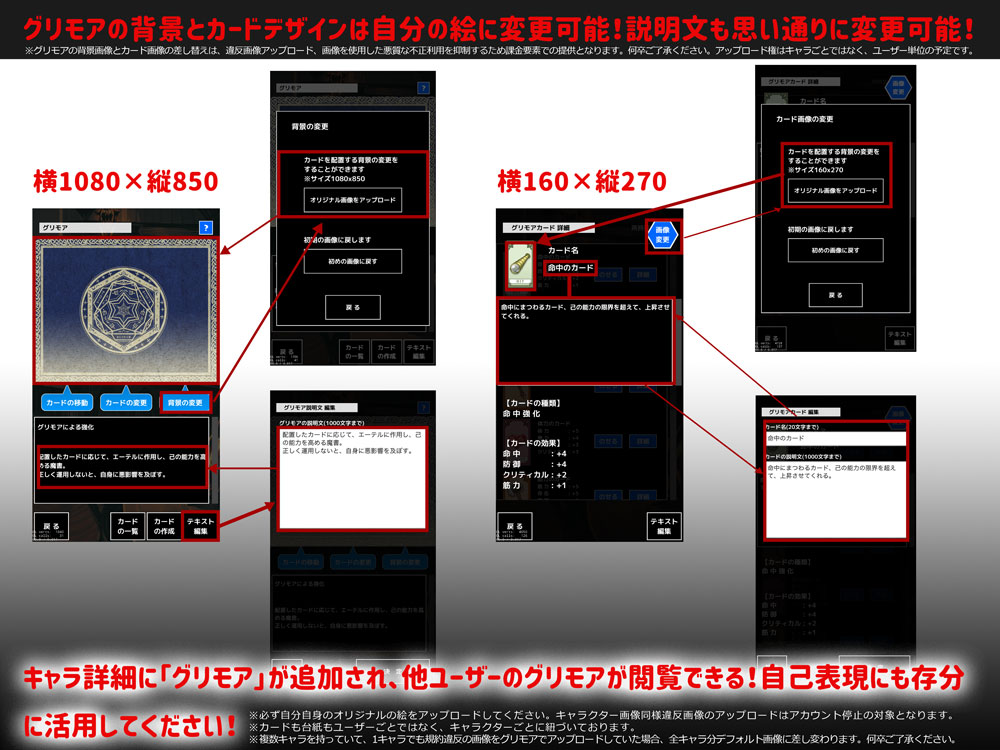 ■ステータス強化&カードデザインを自分の絵に変更可能な『グリモア』システムをアップデート!