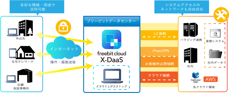 フリービット株式会社(本社:東京都渋谷区、代表取締役社長:田中 伸明、以下「フリービット」)は、高パフォーマンスかつ高セキュリティなクラウド型デスクトップサービス「freebit cloud X-DaaS」(以下、「本サービス」))を発表するとともに、本日より提供を開始することをお知らせいたします。