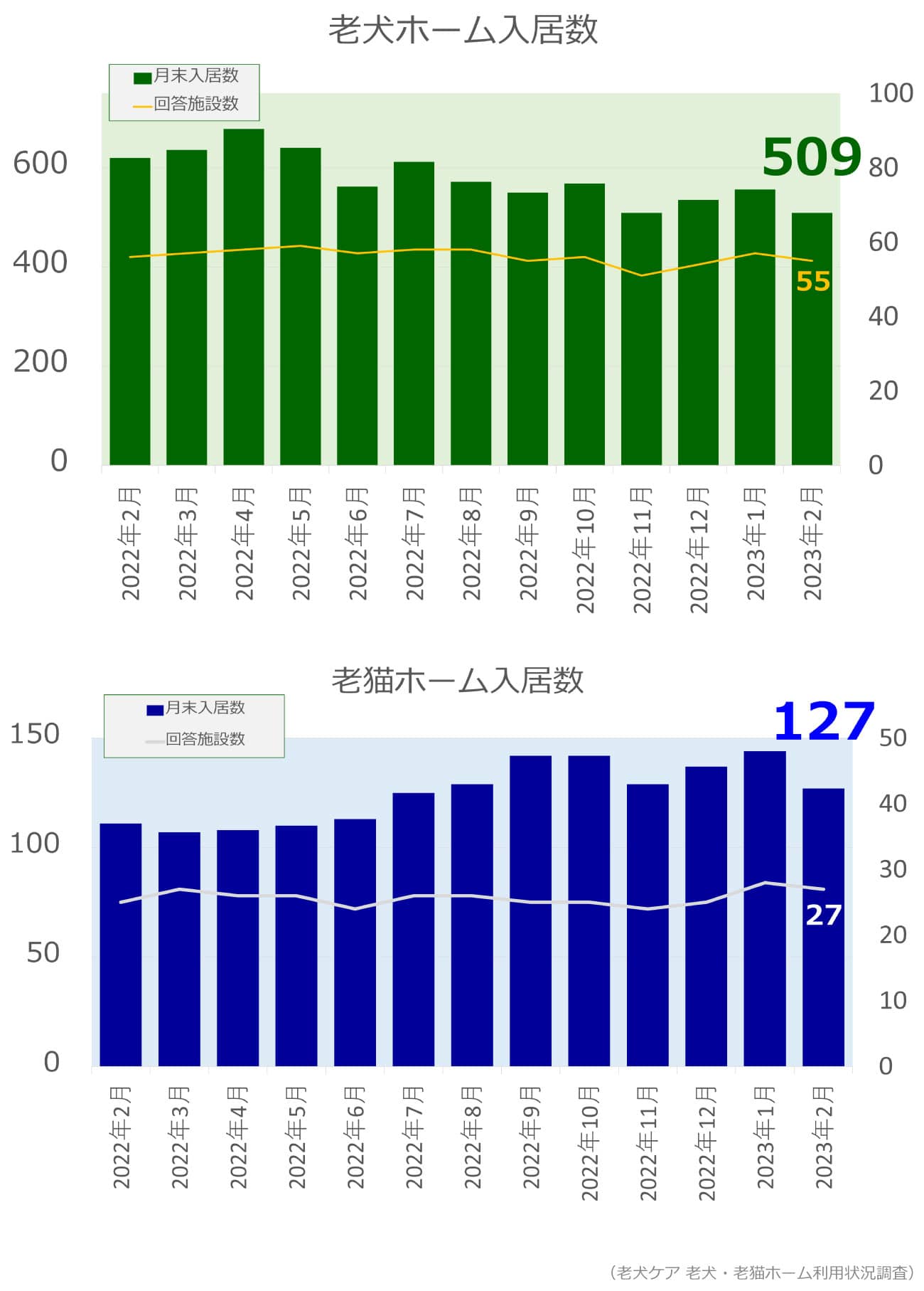 老犬・老猫ホーム入居数調査(2023年2月)発表