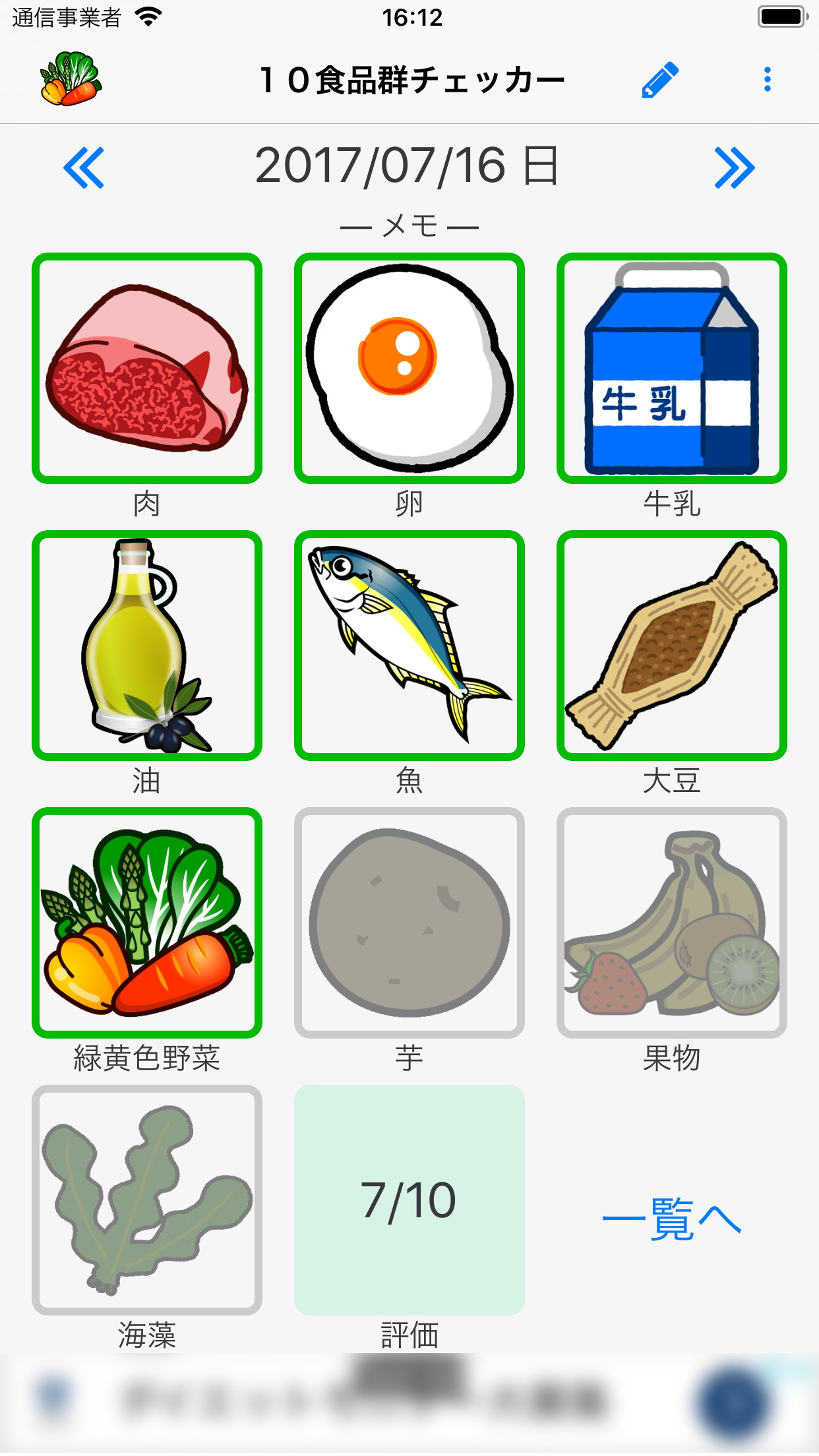 「10食品群チェッカー」は毎日の簡易な栄養チェック・栄養管理アプリです。NHKためしてガッテンで紹介された10食品群チェックシートをアプリにしました。毎食毎日10食品群をチェックする事で栄養の偏りを抑えます。