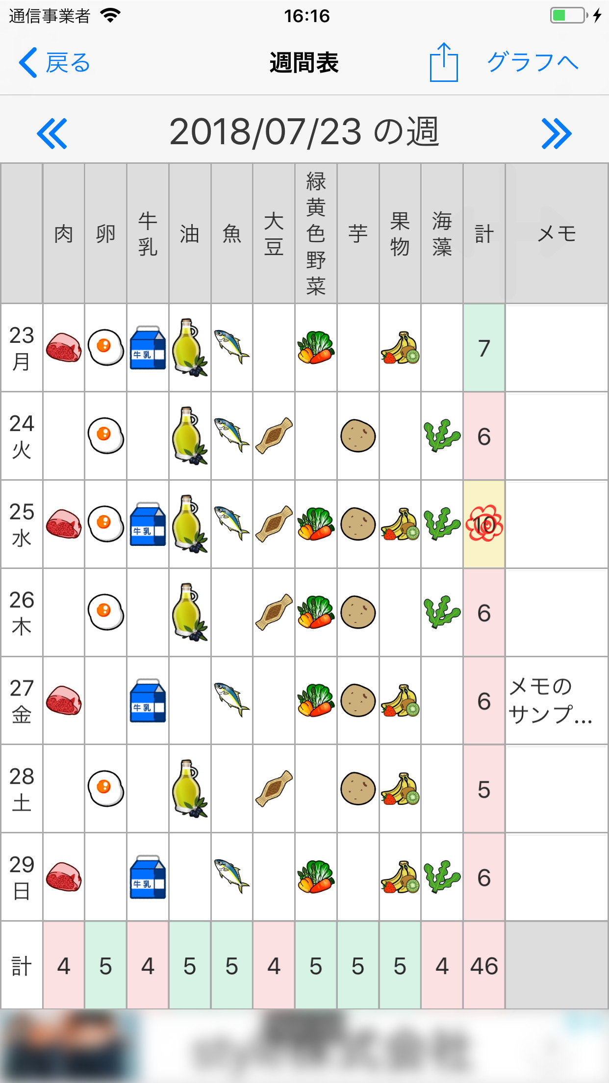 スマホアプリ「10食品群チェッカー」にメモ機能追加