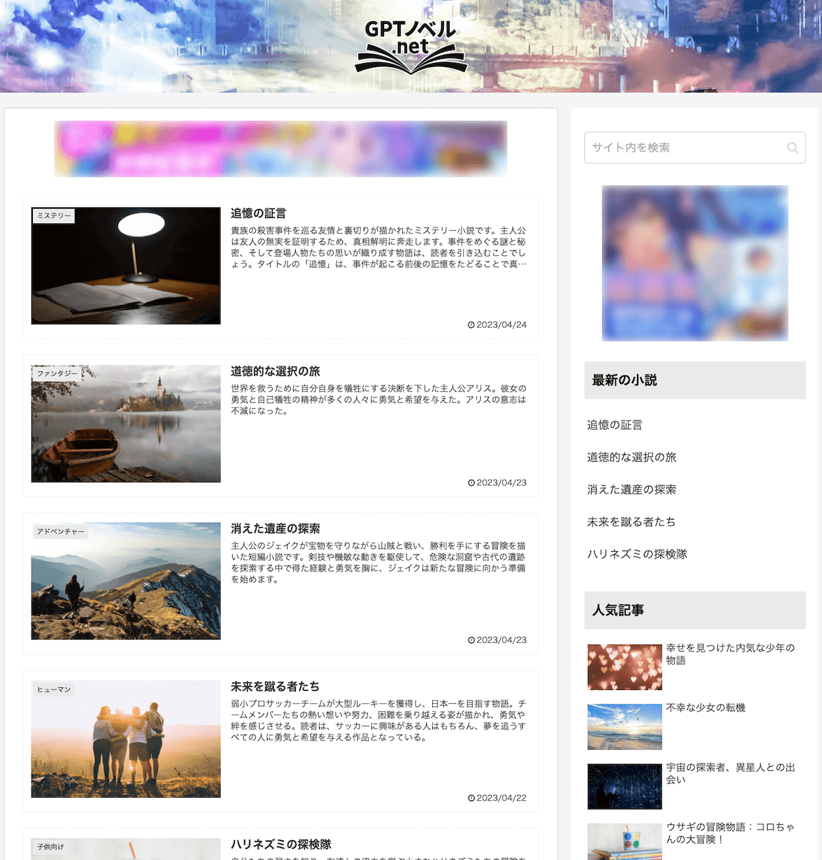 『GPTノベル.net』は、最新技術の自然言語処理技術を採用したChatGPTを活用して、テーマに合わせた小説を自動生成して掲載する新しいオンライン小説サイトです。ユーザーからのテーマ募集も随時行っており、多様なジャンルの小説をお楽しみいただけます。