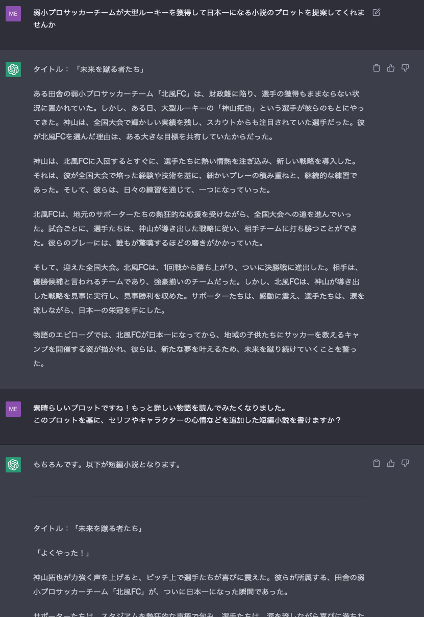 ChatGPTが自動生成した小説は、読者が想像するストーリーとは異なる多彩な展開を見せることがあり、新しい発見があると同時に、面白さと驚きを味わうことができます。