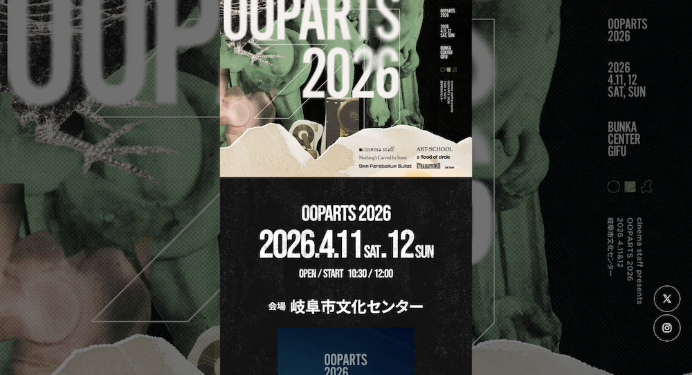 『OOPARTS 2026』は、2026年4月11日(土)・12日(日)の2日間、岐阜市文化センターにて開催予定。第1弾アーティストとして、9mm Parabellum Bullet、ストレイテナー、ART-SCHOOL、a flood of circle、Nothing’s Carved In Stone、cinema staff の6組が発表され、開催前から音楽ファンの間で大きな話題を呼んでいます。