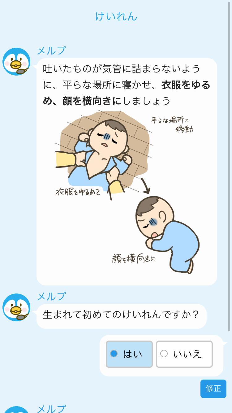 メルプが、お子さんの症状について質問します。1分ほどで終わります。