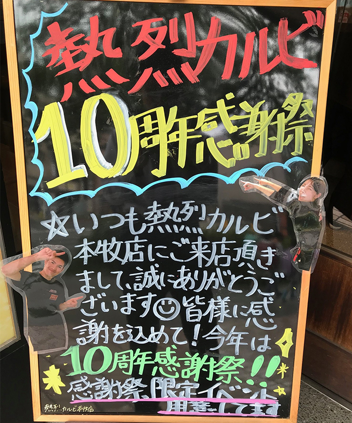 代表取締役:山泉篤) が運営する焼肉屋「熱烈カルビ 本牧店」は、2019 年5 月15 日( 水) に10 周年を迎えました。
