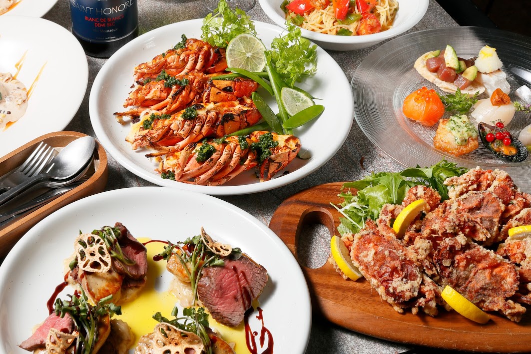 メイン料理には、オマールエビやアンガス牛を取り入れ素材の良さが引き立つ様、盛り付けや調理法を工夫し、イタリアンと和食の要素をフュージョン。