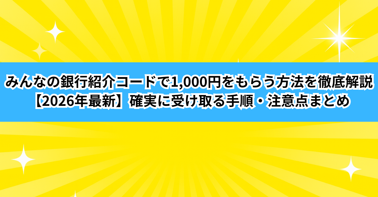 みんなの銀行紹介コードで1,000円をもらう方法を徹底解説【2026年最新】確実に受け取る手順・注意点まとめ