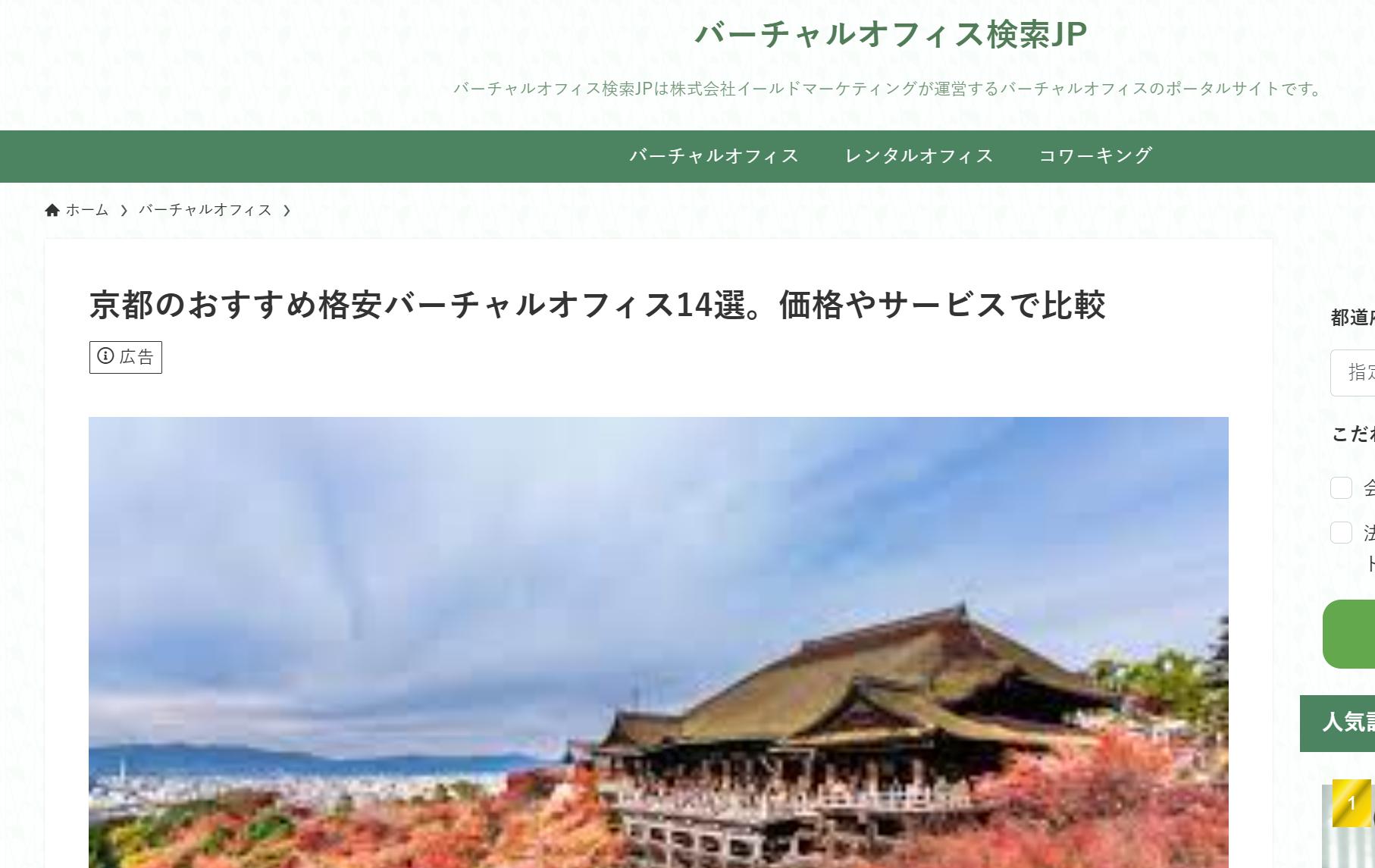 「京都のおすすめ格安バーチャルオフィス14選。価格やサービスで比較」