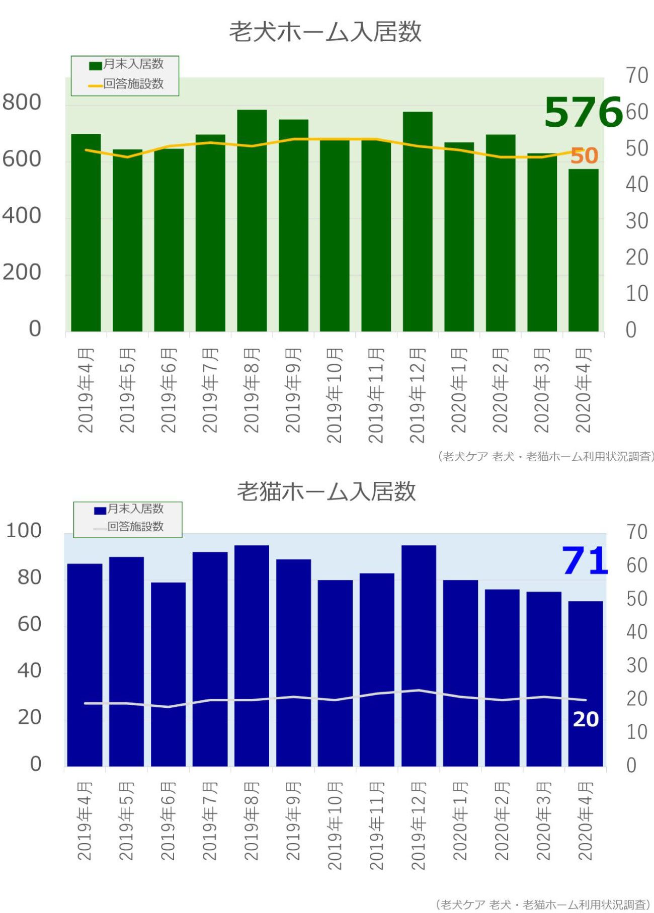 老犬・老猫ホーム入居数調査(2020年4月)