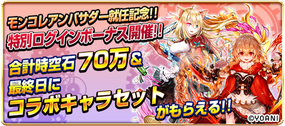 1.アンバサダー就任記念ログインボーナス!合計70万時空石ゲット!