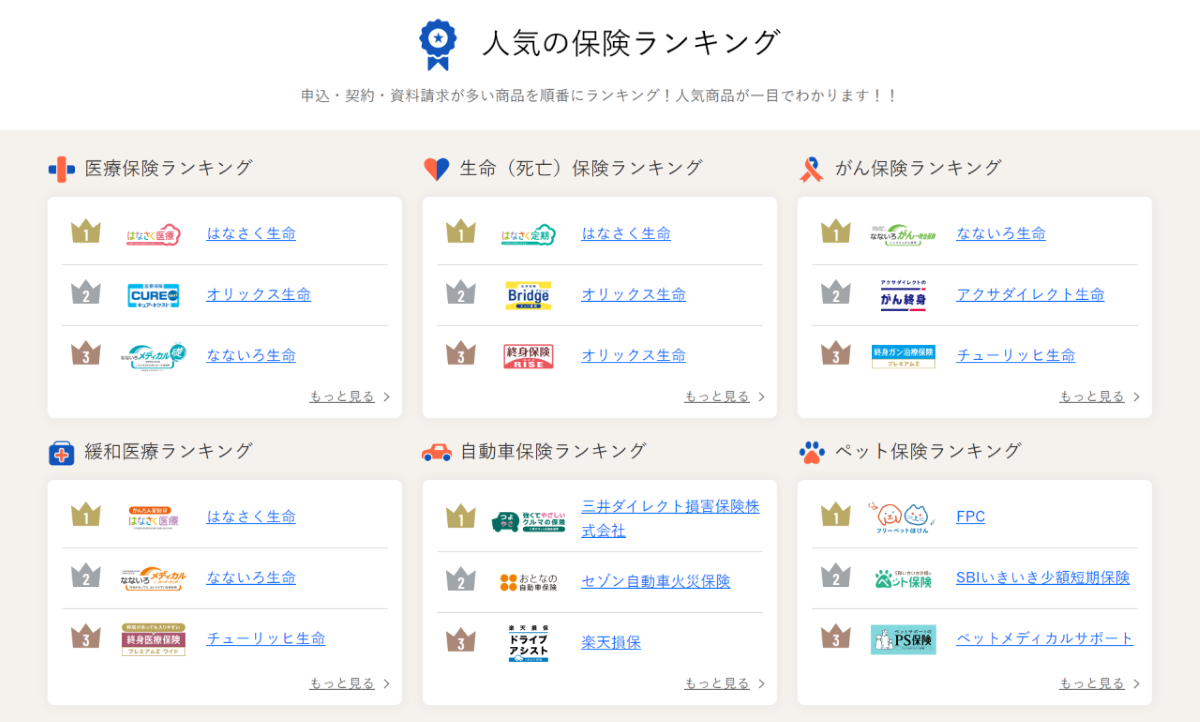 ■ 2023年10月版 人気の保険ランキング