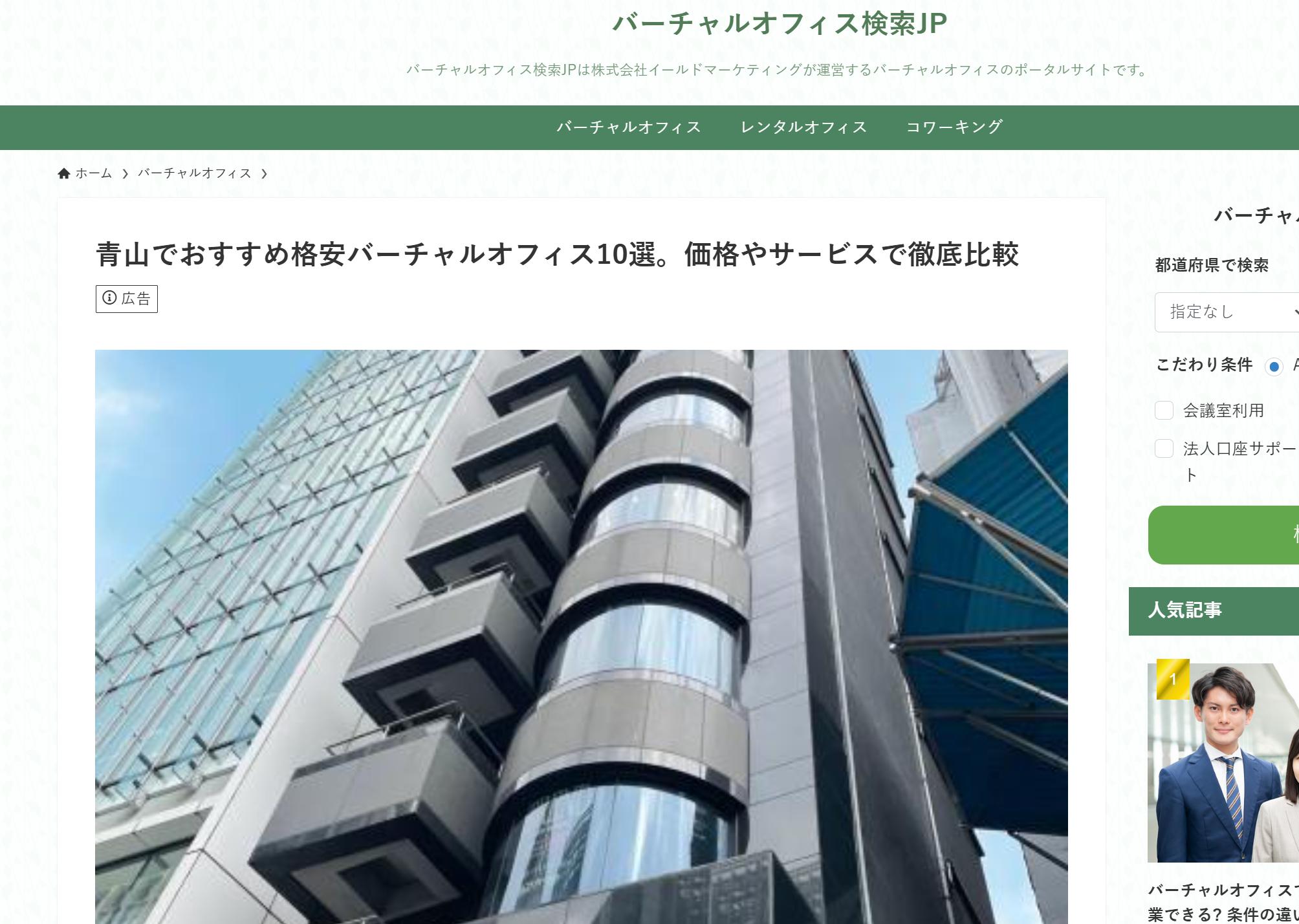 今回1位を獲得した記事「青山でおすすめ格安バーチャルオフィス10選。価格やサービスで徹底比較」は、青山エリアに特化し、価格、サービス内容、立地など、多角的な視点から各バーチャルオフィスを徹底比較しています。