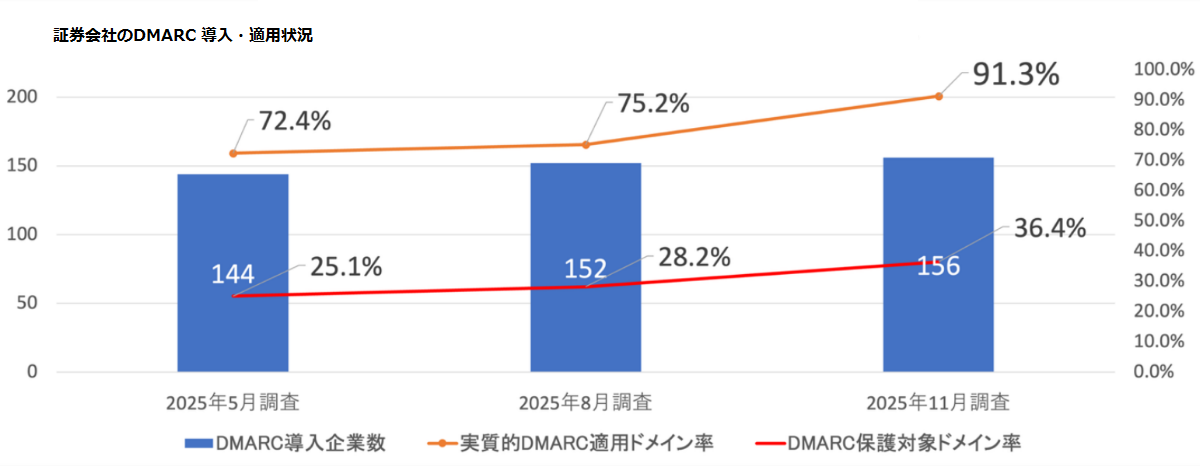 ・ 証券会社ドメインの実質DMARC導入率は91.3%