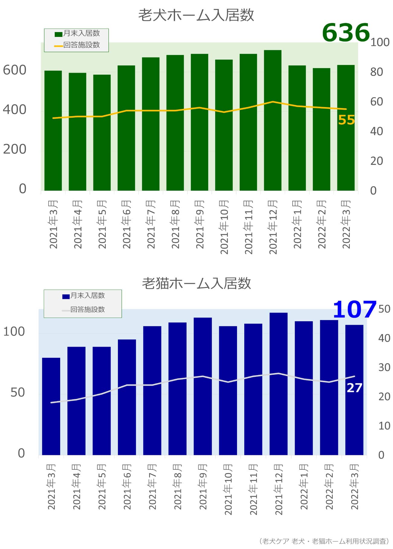 老犬・老猫ホーム入居数調査(2022年3月)