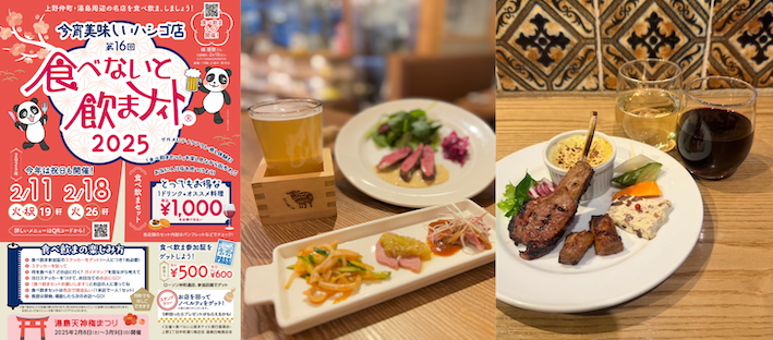 食べないと飲まナイト実行委員会は、今年も東京の上野・湯島で「食べないと飲まナイト」16回目を2025年2月11日(火・祝)と2月18日(火)に開催いたします。食材費をはじめ幅広い分野で値上げが続いているにも関わらず、全店舗(※1)にておすすめ料理とドリンクのセットをたったの1,000円で楽しめる、太っ腹なイベントを開催。今年は26店(※2)が一致団結し、1,000円の価格をすえおきのまま、街の活性化のために赤字覚悟で参加します。テレビ番組の大河ドラマ「べらぼう~蔦重栄華乃夢噺~」でもいま話題の台東区、同時期に近隣では湯島天神梅まつりも開催中です。ぜひこの機会に下町の気になるお店をたくさんハシゴしてお楽しみください。