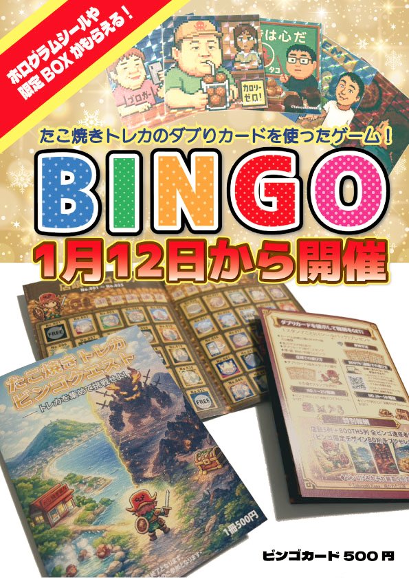 同店が展開するオリジナル企画「たこ焼きトレカ」を使った参加型ビンゴイベントが、2026年1月12日よりスタートする。
